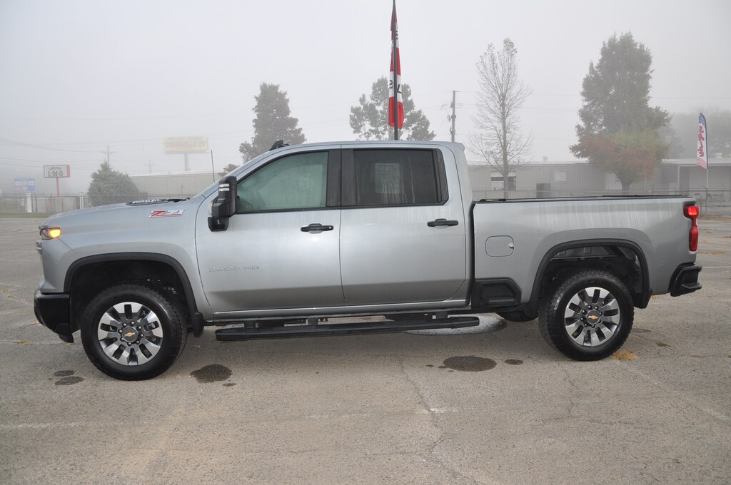 One Owner, Current State Inspection, 129 Point Inspection Completed, Rear View Camera, Bluetooth Handsfree, Remainder of Factory Warranty, Cruise Control, Four Wheel Drive, 10-Speed Automatic, 4WD, Jet Black w/Cloth Seat Trim, 10-Way Power Driver Seat Adjuster w/Lumbar, 120-Volt Interior Power Outlet, 170 Amp Alternator, 2-Speed Electronic Shift Transfer Case, 3.5" Diagonal Monochromatic Display DIC, 4-Wheel Disc Brakes, ABS brakes, Air Conditioning, Alloy wheels, AM/FM radio: SiriusXM with 360L, Black Mirror Caps, Bluetooth® For Phone, Chevrolet Connected Access Capable, Color-Keyed Carpeting Floor Covering, Compass, Custom Convenience Package, Custom Value Package, CX Safety Package, Deep-Tinted Glass, Delay-off headlights, Driver door bin, Dual front impact airbags, Dual front side impact airbags, Electric Rear-Window Defogger, Electronic Cruise Control w/Set & Resume Speed, EZ Lift Power Lock & Release Tailgate, Front Rubberized Vinyl Floor Mats, Fully automatic headlights, HD Rear Vision Camera, Heated & Auto-Dimming Vertical Trailering Mirrors, Heated Vertical Trailering Mirrors, Hill Descent Control, Integrated Trailer Brake Controller, LED Cargo Area Lighting, Locking Tailgate, Manual Tailgate Function w/No EZ Lift, Manual Tilt-Wheel Steering Column, Off-Road Suspension, Panic alarm, Passenger door bin, Power Door Locks, Power door mirrors, Power Front Windows w/Driver Express Up/Down, Power Front Windows w/Passenger Express Down, Power Rear Windows w/Express Down, Power steering, Power windows, Preferred Equipment Group 1CX, Push Button Start, Rear 60/40 Folding Bench Seat (Folds Up), Rear Rubberized Vinyl Floor Mats, Rear step bumper, Remote Keyless Entry, Remote Vehicle Starter System, Speed control, Split folding rear seat, Standard Tailgate, Suspension Package, Tilt steering wheel, Unauthorized Entry Theft-Deterrent System, Wi-Fi Hotspot Capable, Wireless Phone Projection, Z71 Off-Road Package. Recent Arrival! Sterling Gray Metallic 2024 Chevrolet Silverado 2500HD Custom 4WD 10-Speed Automatic 6.6L V8