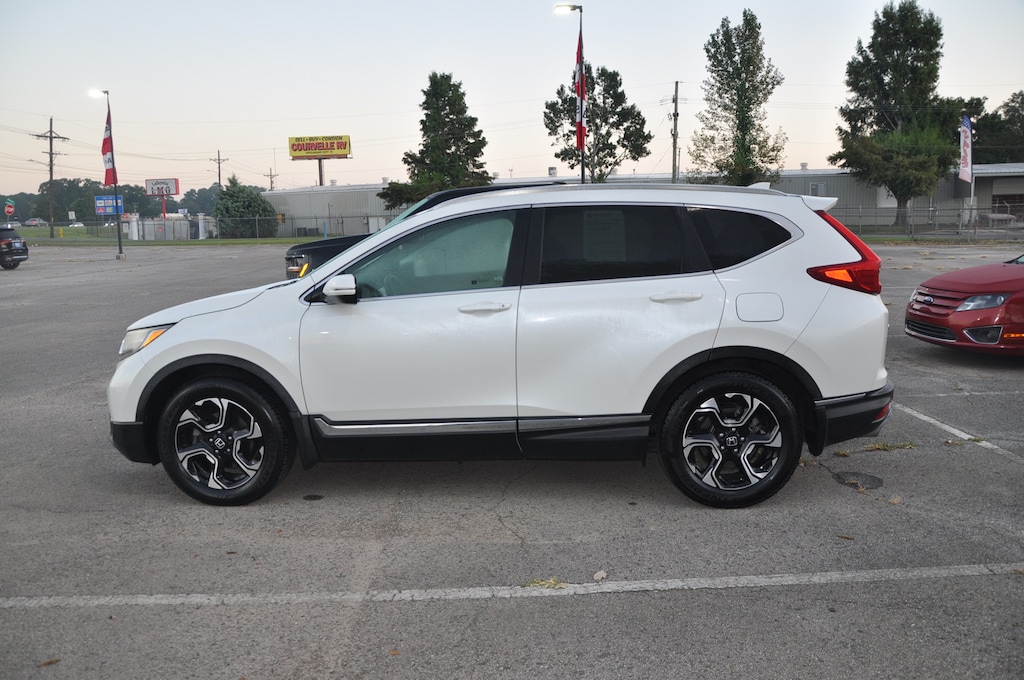 Current State Inspection, 129 Point Inspection Completed, Rear View Camera, Bluetooth Handsfree, BLIS Blind Spot Monitor, Sunroof Moonroof, Power Lift Gate, Cruise Control, Heated Seats, Remote start, Leather, 18" Alloy Wheels, 4-Wheel Disc Brakes, ABS brakes, Air Conditioning, Alloy wheels, AM/FM radio, Automatic temperature control, Bumpers: body-color, Delay-off headlights, Driver door bin, Dual front impact airbags, Dual front side impact airbags, Exterior Parking Camera Rear, Front Bucket Seats, Front Center Armrest, Front dual zone A/C, Front fog lights, Fully automatic headlights, Heated Front Bucket Seats, Heated front seats, Leather Seat Trim, Panic alarm, Passenger door bin, Power door mirrors, Power driver seat, Power Liftgate, Power moonroof, Power passenger seat, Power steering, Power windows, Rear window defroster, Remote keyless entry, Security system, Speed control, Split folding rear seat, Tilt steering wheel. Recent Arrival! White 2017 Honda CR-V Touring FWD CVT 1.5L I4 DOHC 16V
